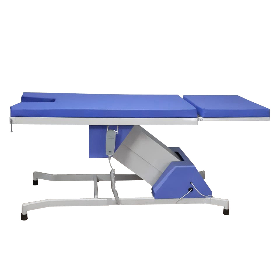 Electric Examination able with Hi,Lo positioning with wired remote, Head up position manually. Wheels Provided optionally.