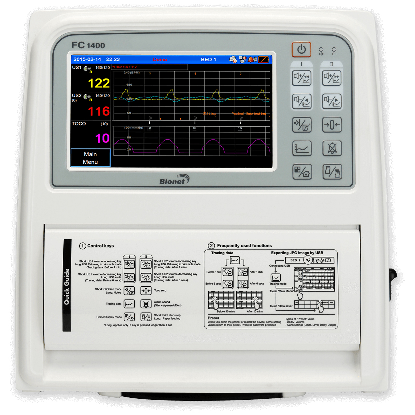 7” color TFT LCD (800X480), Touch screen operation, CTG Interpretation, 2 display modes (Text or Graph), USB Wi-Fi converter, USB memory storage for exporting JPG file to EMR, 10 smart keys for 16 functions, Yellow or Green LED alarm lamp for easier recognition of device and patient status, Li-ion rechargeable battery allows maximum 2-hour operation, More compact probe & robust connector
